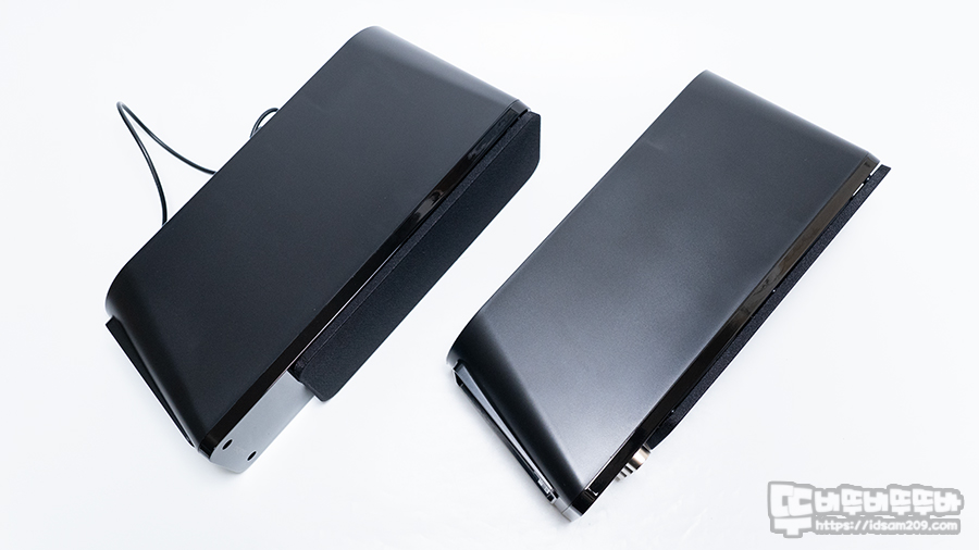 스피커 상단에 위치한 에어덕트는 뒤로 도망가는 형태로 디자인되어 있어 벽을 이용한 소리 반사를 이용한다면 제품을 사용한다면 도움이 되실 거 같습니다.