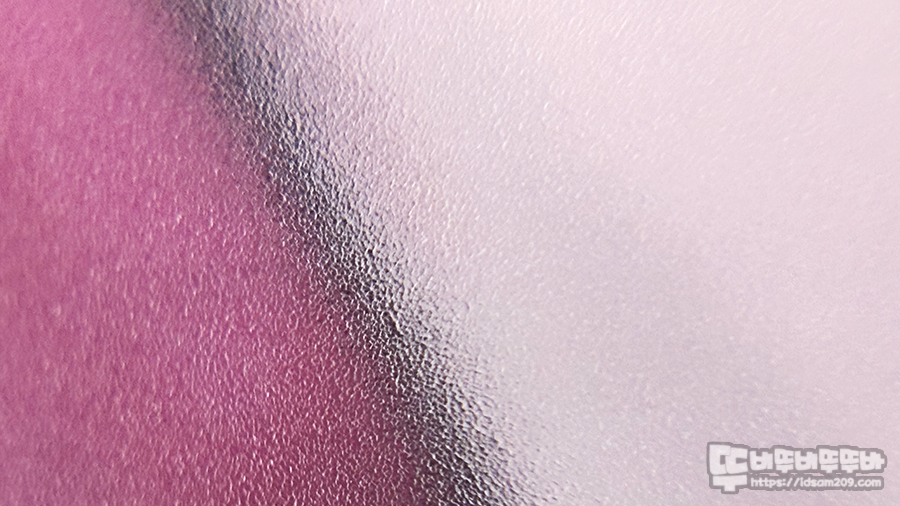 확대경으로 확대했을 때 이렇게 보이지만 손으로 강화유리 패드 표면을 만져보면 거친 느낌은 없고 상당히 매끄럽고 뽀송뽀송함을 느낄 수 있습니다.