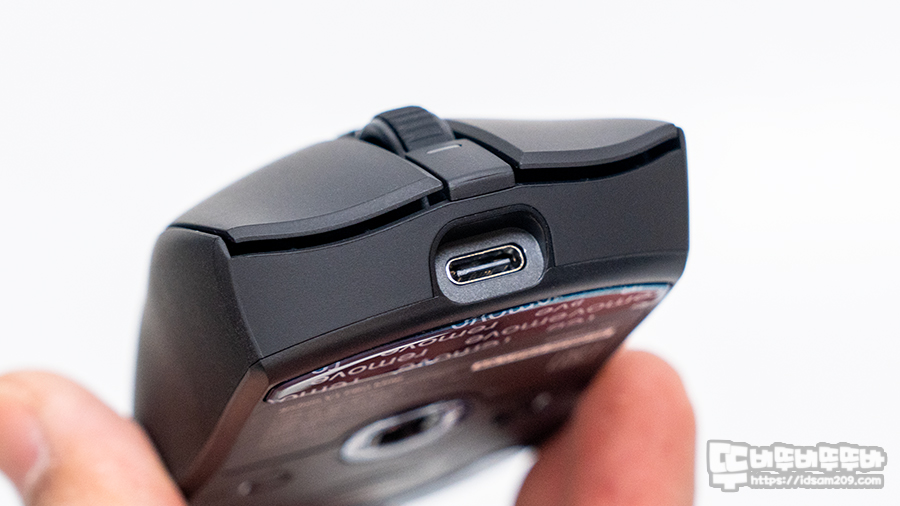 마우스 정면에는 충전과 유선으로 사용할 수 있는 USB-C 단자가 위치하고 있습니다.