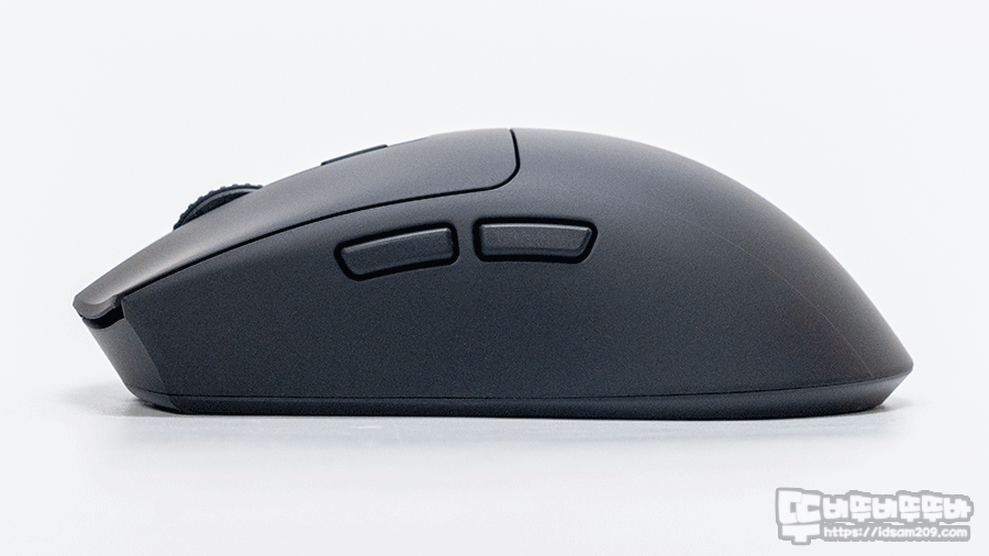 미니 사이즈 제품이기에 필자처럼 손이 큰 사람은 클로 그립이 적합하며 오른쪽 사이드 버튼 중앙 아래에 엄지손가락에 파지 되어 한쪽으로 치우지지 않은 상태에서 양 사이드 버튼을 사용하는데 불편함은 없었습니다
