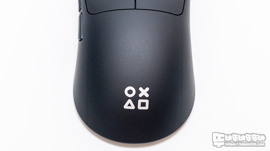 마우스 상단 하우징 뒷부분에는 PS를 연상시키는 ○X△□ 로고가 눈에 띄고요.
