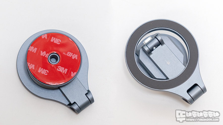 맥세이프 링이 있는 원형 거치대는 지름 56.5mm로 아이폰 류에 사용된 맥세이프와 호환이 되지만 안정적인 사용하기 위해서 맥세이프 케이스가 씌워진 형태로 사용하는 걸 추천드리고요.