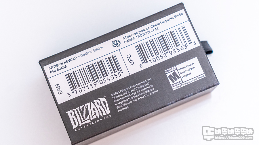 첫 번째로 작은 상자에 Diablo IV로고와 Artisan 키캡 문구가 인쇄된 MX 기계식 스위치 호환 가능하며 2,160개 한정판으로 제작되어 키캡에는 고유의 넘버링이 되어있다고 하네요.