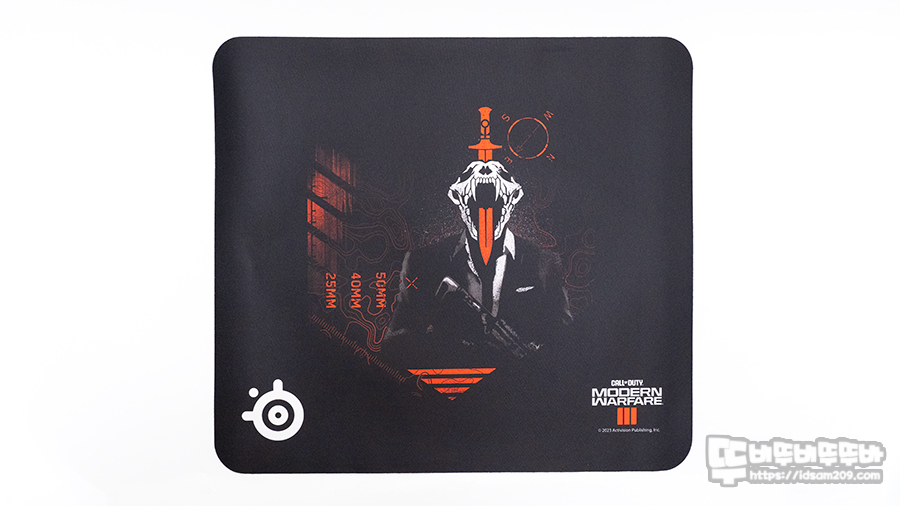 공식 라이선스 Call of Duty : Modern Warfare III 아트 게임 마우스패드는 450mm x 400mm x 2mm 사이즈로 노멀한 Qck 패드와 다르게 표면을 이미지를 열가공처리하여 마우스 글라이딩 시 이질감이 없이 매끈한 게 특징인데요.
