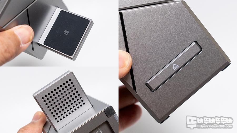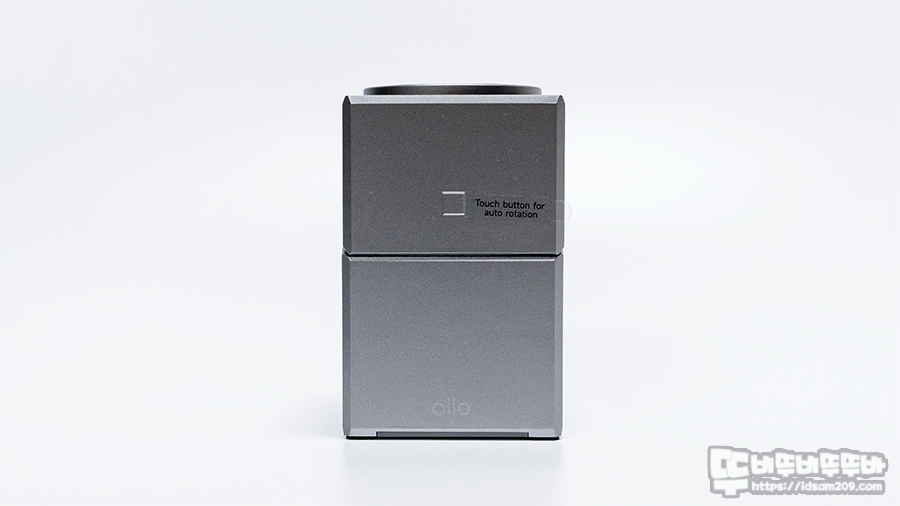 전면에서 보면 이층 디자인으로 보이지만 상단부는 회전이 되는 형태로 전면에 터치센서가 내장되어 센서 위치를 조그만 사각형으로 구분해 주고 있습니다.