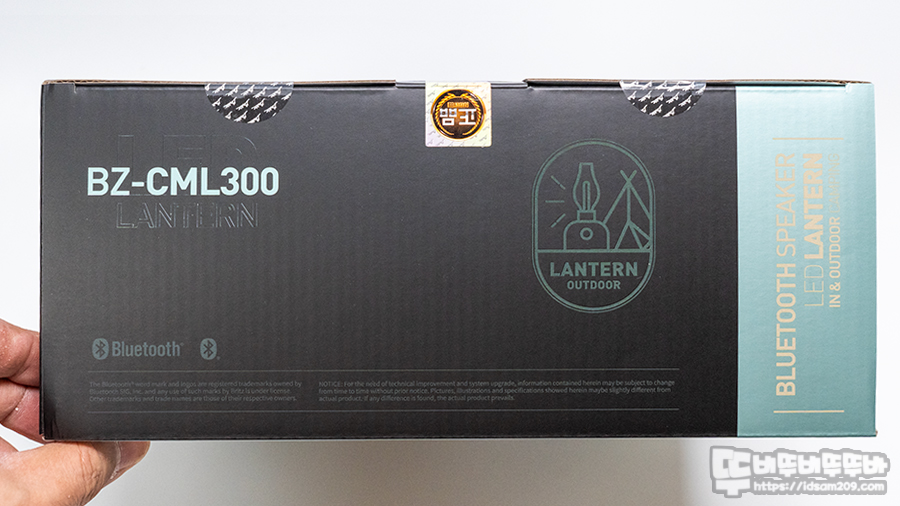 패키지 측면에는 제품의 블루투스, LED 랜턴, 인/아웃도어 캠핑 스피커로 제품의 아이덴티티를 표현하고 습니다.