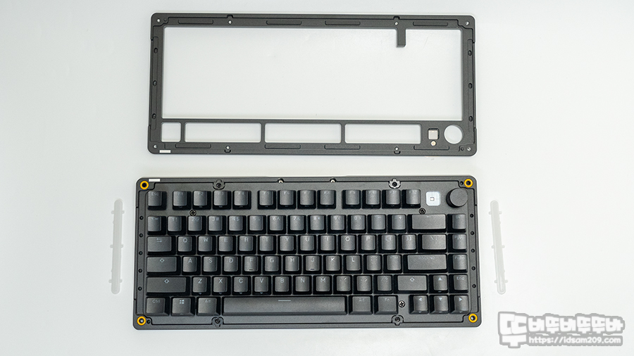 과거에는 알루미늄 하우징 제품의 경우 상판 또는 하판에 나사로 기판을 고정하는 구조가 흔했다면 Glorious GMMK 3 PRO HE는 상판과 하판에 스펀지 타입의 가스켓으로 기판의 위/아래를 눌러주는 방식으로 단단한 키감을 주는데요.
