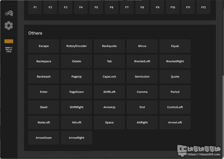개별 키 지정 시 키보드 이미지에서 표시되는 부분은 없고 우측 하단에 선택 키 정보를 보여주는 부분으로 설정값을 확인할 수 있는데 지정되는 키가 많은 경우 위/아래로 스크롤 해야 모든 내용을 확인할 수 있는 만큼 개별 키 설정 시 천천히 작업하시기 바랍니다.