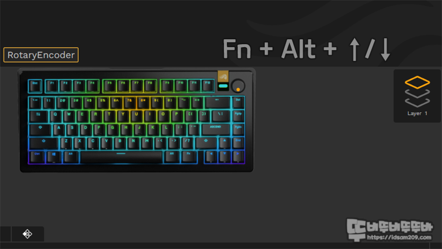 또한 3개의 레이어 선택 기능도 지원하기에 레이어 1번을 제외한 2, 3번에 매크로나 다양한 키 입력을 저장하여 사용한다면 레이어를 변경하여 편리하게 사용이 가능하니 참고하세요.