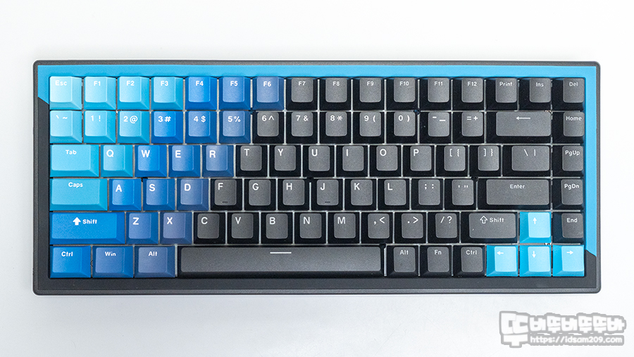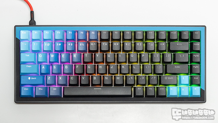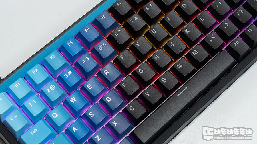 제품에는 PBT 이중 사출 키캡이 적용되었으며 스카이블루, 블루, 인디고블루, 블랙 컬러로 포인트를 주고 있는데요.