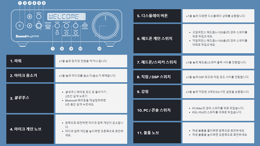 PC 사운드에 최적화된 제품으로 출시한 Sound Blaster X5는 USB 전원으로 사용하는 만큼 PC 또는 콘솔 게임기에서 최고의 성능으로 사용할 수 있는 제품으로 몇 가지 강점을 꼽아보면 뭐니 뭐니 해도 소프트웨어 없이 조작이 가능한 전면 컨트롤 버튼, 기능을 선택한 옵션을 상세하게 보여주는 디스플레이 내장, 블루투스 기기 연결 등 기존 사운드카드의 부족한 부분을 채워주는 사운드 블라스터 X5를 리뷰를 통해 자세히 살펴보겠습니다.