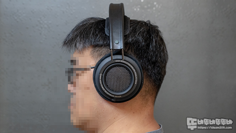 위의 이어컵 하우징 사진과 고밀도 메모리폼이 사용된 오버이어 이어패드 덕에 착용감이 좋습니다. (평소에 약 4시간가량 1주일간 사용해 봄)