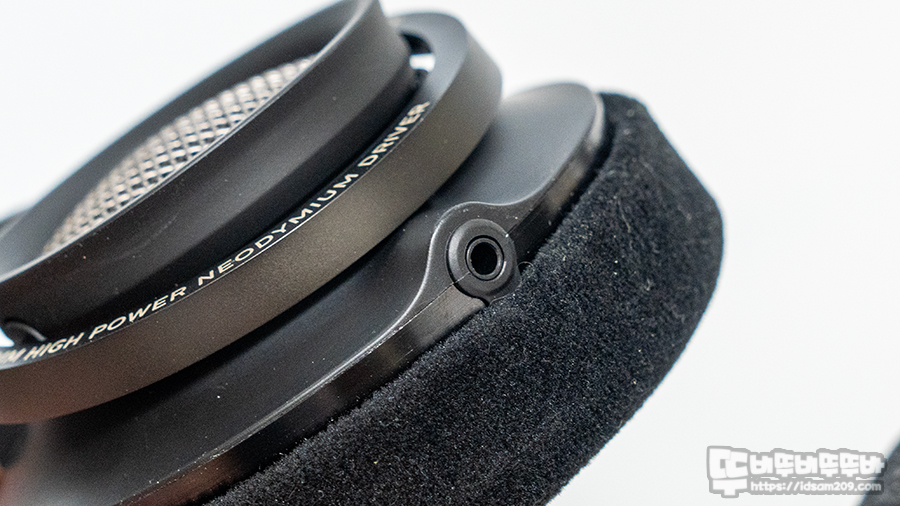 3.5mm 연결 잭은 헤드폰의 왼쪽에 위치하고 있으며 케이블 내부 단선이 많은 일체형 케이블 방식보다 유지 보수면에서 좋은 선택인 거 같네요.