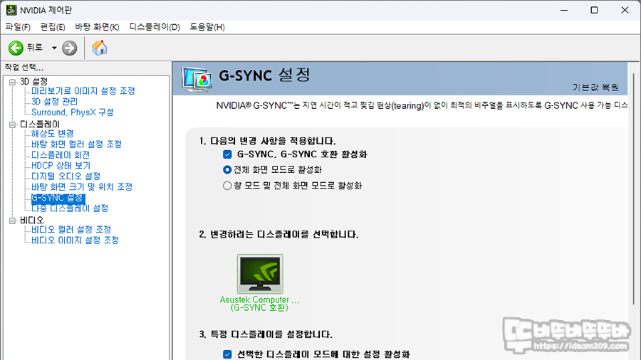 - Variable Refresh Rate On - ELMB 설정 - ELMB Sync ( G-Sync 자동 활성화 )