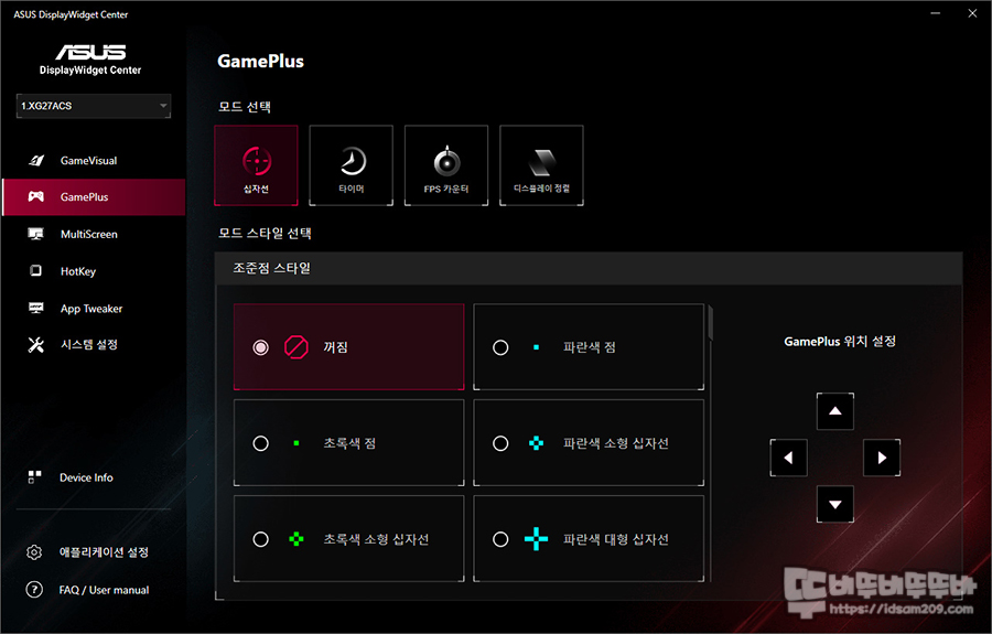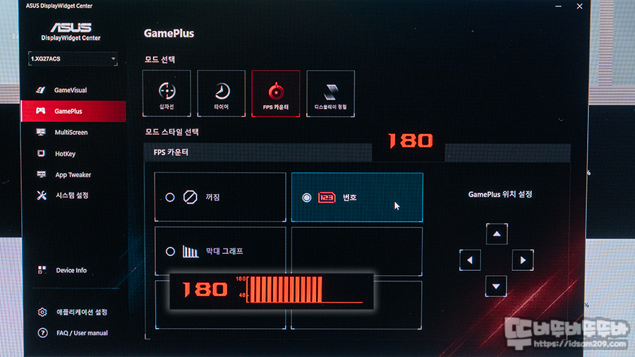 특히 오버레이 표현으로 모니터에만 표현이 되기에 Display Widget Center에서는 마우스, OSD에서는 조그 버튼을 이용하여 왼쪽 상단이 기본위치로 되어있는 것을 사용자가 원하는 위치로 변경하여 사용할 수 있습니다.