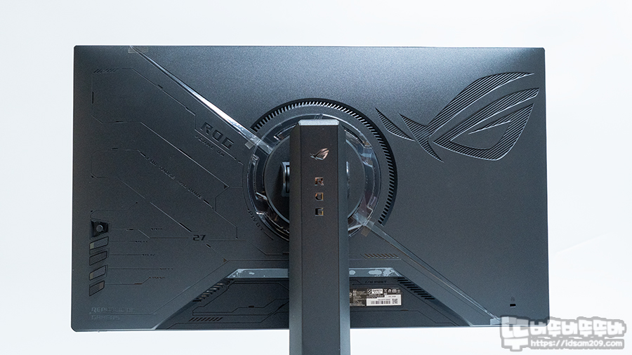 모니터 뒷면을 살펴보면 ROG 로고와 디자인 라인이 적용되어 고급스러운 느낌을 주는데요.