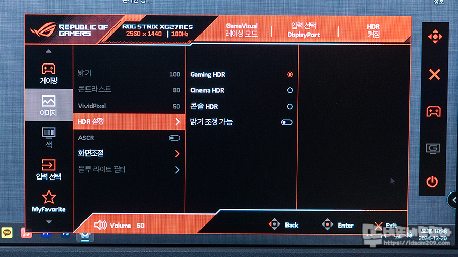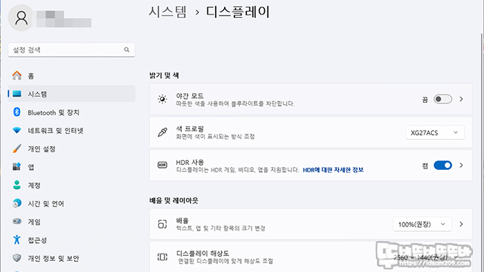 HDR의 기능의 경우 윈도우즈 디스플레이 정보의 HDR 활성화 후 사용이 가능하니 참고하시기 바랍니다.