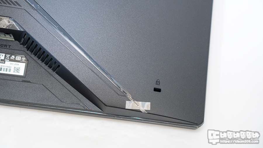 한쪽 끝부분에는 버튼으로 구성된 다양한 메뉴 버튼과 OSD 메뉴를 편리하게 사용할 수 있는 조그 버튼 그리고 반대편에는 켄싱턴 락으로 구성된 것을 확인할 수 있습니다.
