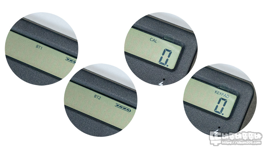 키패드 핵심적인 기능은 상단에  계산기 / 키패드 전환 버튼과 블루투스 1, 블루투스 2  멀티 페어링 버튼으로
