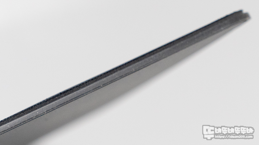 기본으로 제공되는 패브릭 패드는 표면 확대 사진과 같이 가로로 이어지는 스웨터 짜임이 촘촘한 스피드 성향의 패드로 강화유리 피트를 사용하고 있는 필자가 사용하기에 상당히 잘 미끄러지는데요.