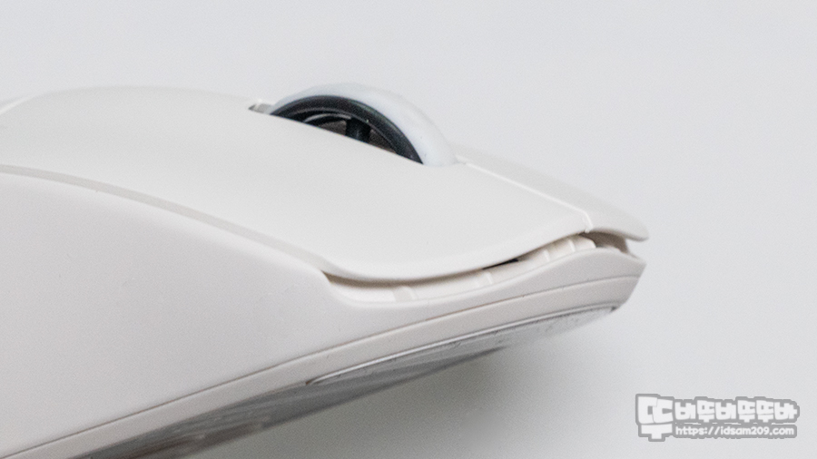 버튼부에 충전 단자를 제거하여 상당히 낮은 게 특징인데 마우스 그립을 위해 w 형태로 디자인 되어 편안한 그립감을 제공합니다.