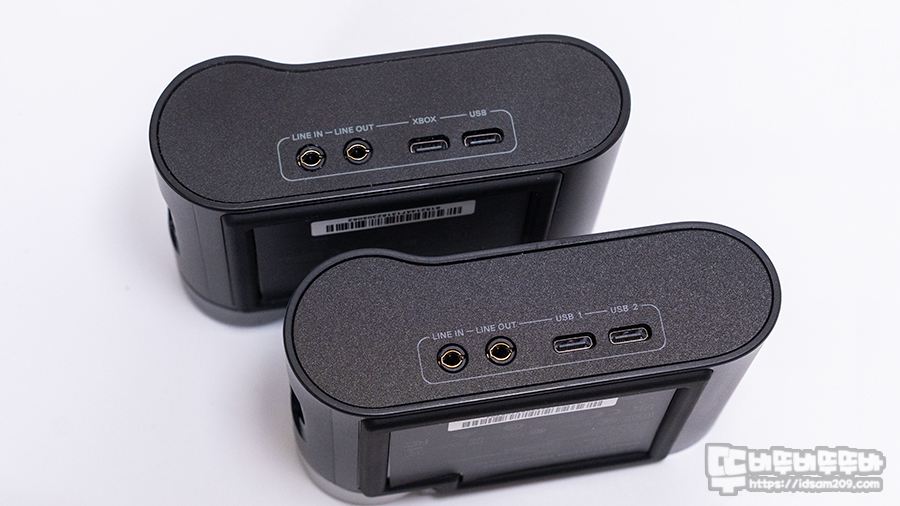 두 모델 모두 GameDAC Gen 2 기능은 동일하게 제공되지만 후면 단자 구성이 Xbox 모델은 Xbox 연결을 위한 전용 단자가 포함되어 있고, PC & PlayStation 모델은 듀얼 USB 단자를 활용하여 PC, PS4/PS5, 태블릿 등 USB-C 단자로 구성된 다양한 기기 이용하는데 편하기에 Xbox를 사용하지 않는다면 PC & PlayStation 모델을 선택하는 것이 활용도 면에서 좋으니 구입 전 자신의 환경에 맞춰 신중하게 선택하시기 바랍니다.