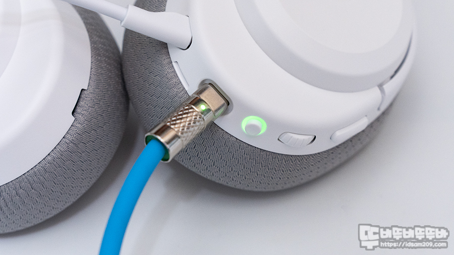 배터리 레벨에 따라 그린 - 옐로우 - 오렌지 - 레드 컬러로 표현되지만 헤드셋을 착용한 상태에서 확인이 불가능하니 소프트웨어나 스마트폰 앱을 이용하여 배터리 잔량 확인하시는 게 좋습니다.
