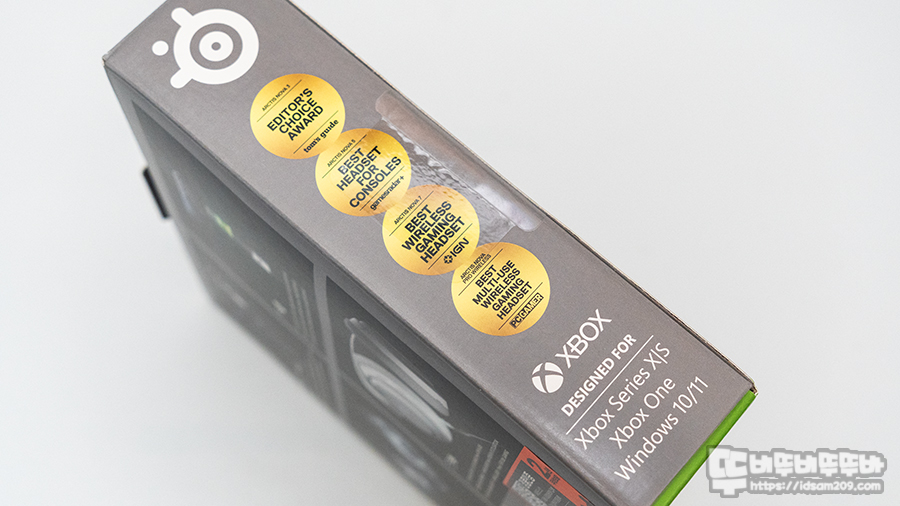 XBOX의 아이덴티티 컬러 적용과 로고 모습을 확인할 수 있으며 측면에는 다양한 IT 커뮤니티의 어워드 수상 정보를 확인할 수 있습니다.