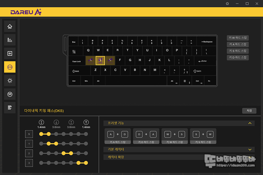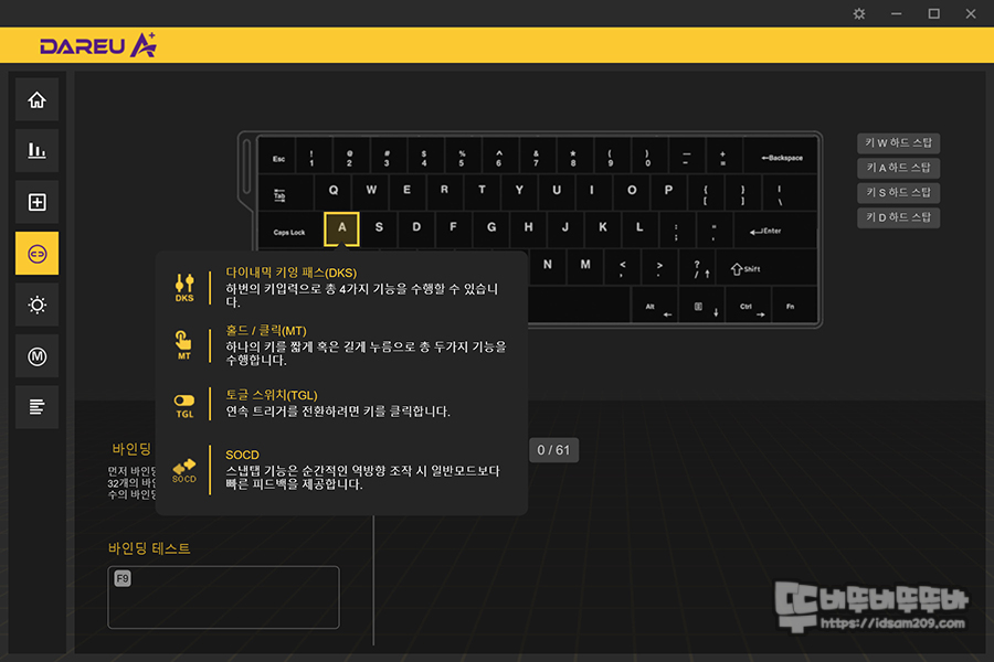 2. DKS, MT, TGL, SOCD 기능 - 웹 버전에서는 확인이 안 되는 기능이라 의아했는데 이 부분은 설치 버전에서는 사용이 가능합니다.