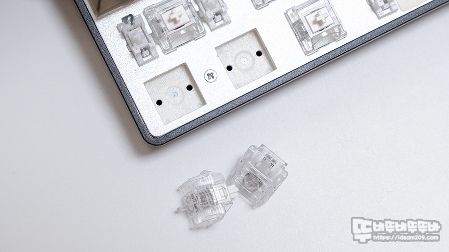 다얼유 COOL60는 알루미늄 보강판에 윤활 처리된 스빌라이저 스페이바 주변의 타공면은 실리콘으로 잘 커버가 되어있습니다.