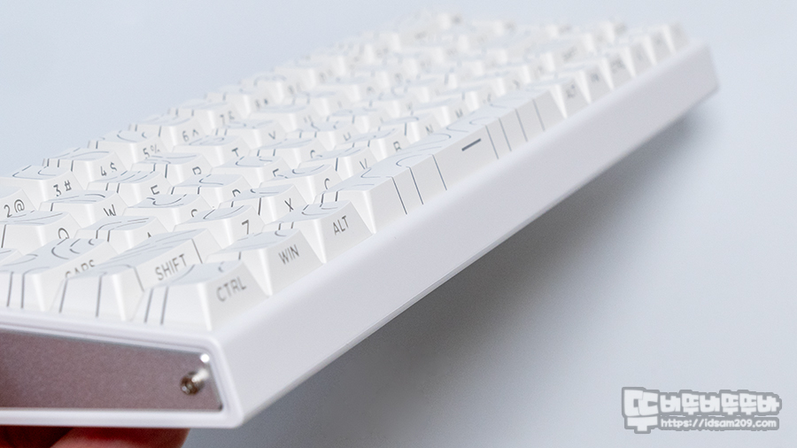 화이트 컬러를 베이스로 하는 하우징과 키캡과 언밸런스한 컬로 조합이기에 이게 뭔가? 했는데 키보드를 PC에 연결하고 나서 RGB LED 효과를 표현하는 라이트 박스라는 것을 알게 되었습니다.
