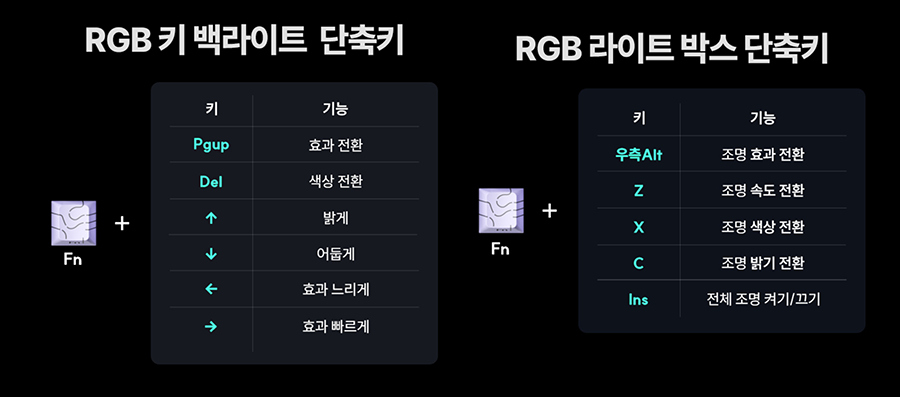 RGB LED 효과를 담은 영상을 참고하시기 바랍니다.