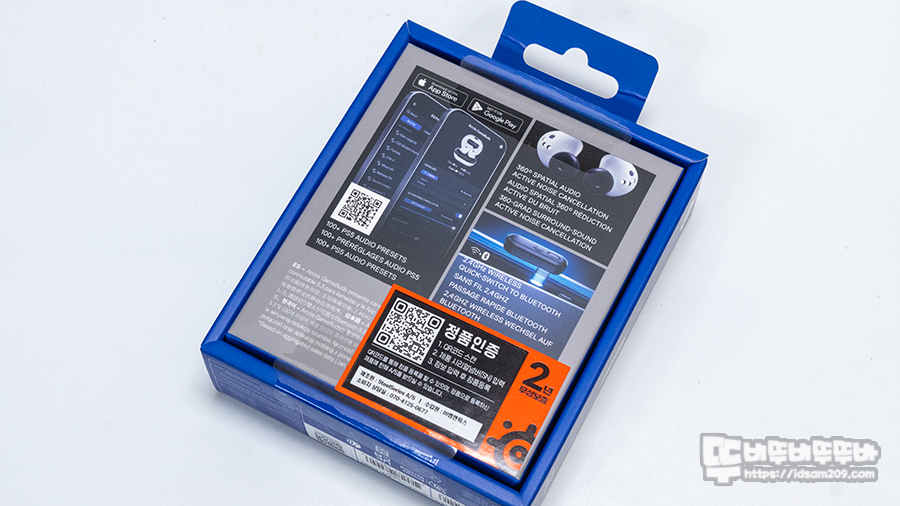 패키지에는 액티브 노이즈 캔슬링, 2.4GH 무선 + 블루투스 지원, 플레이스테이션을 비롯한 멀티 플랫폼을 지원하는 내용을 강조하고 있고요.