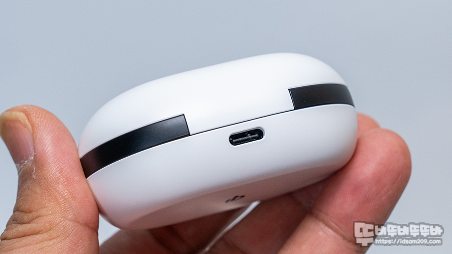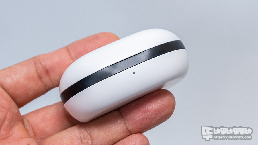 충전 케이스 뒷면에는 USB-C 방식의 충전 단자가 위치하고 있으며 전면에는 충전 상태와 배터리 상태를 나타내는 LED 인디케이터가 위치하고 있네요.