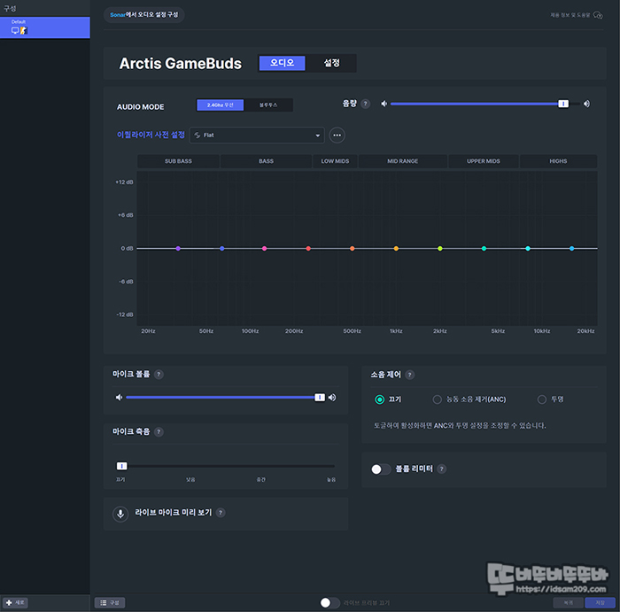 그렇게 심한 건 아니지만 중고음이 쩅한 음향기기를 접하다가 Arctis Gamebuds로 바꿔서 들어보면 약간의 차이가 느껴지며 오랜 시간 사운드를 접하다 보면 적응이 되지만 초기에 사운드 적응이 힘드신 분은 EQ 프리셋을 조정하면 사운드 적응이 도움이 되실 거 같습니다.