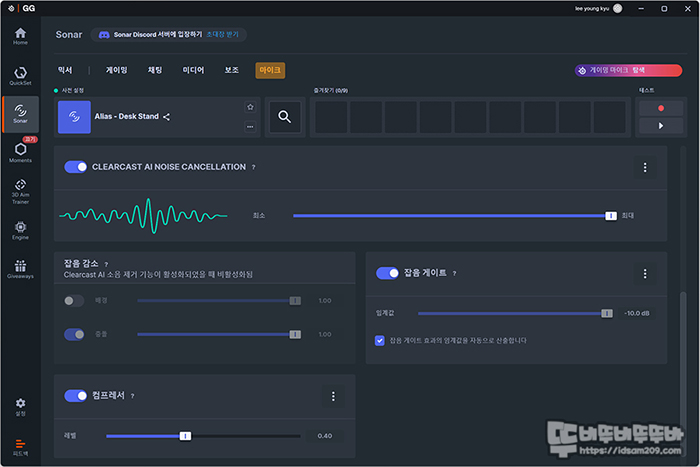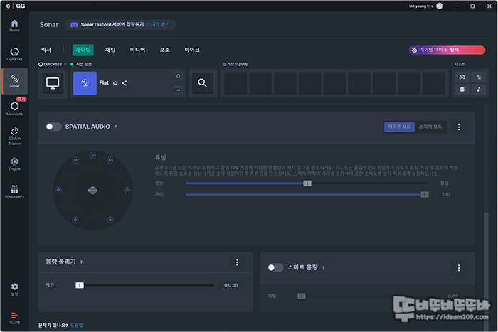 게이밍 이외 채팅, 미디어, 보조, 마이크 메뉴에서도 각 항목에 해당하는 프리셋을 지원하니 참고하세요.