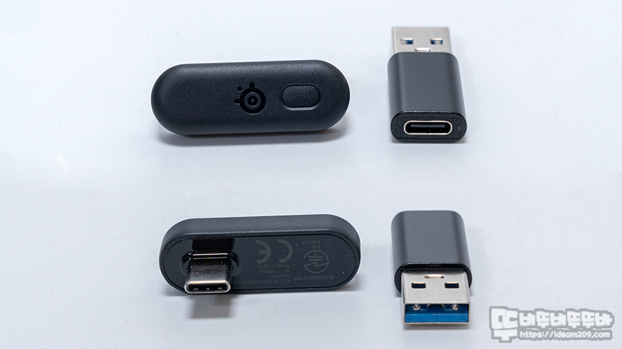 무선 이어버드는 USB-C 단자로 구성되어 있어 휴대용 기기와 모바일 기기에 활용이 가능하며 USB-C 단자가 없는 경우 일번적인 USB-A 단자에 사용 가능한 변환 아답터를 제공하고 있는데요.