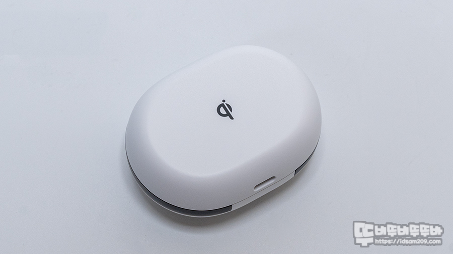 윗부분과 다르게 바닥면은 평평하게 디자인되었으며 Qi 충전을 지원하는 로고가 인쇄되어 사용자로 하여금 직관적으로 충전 위치를 확인할 수 있었습니다.