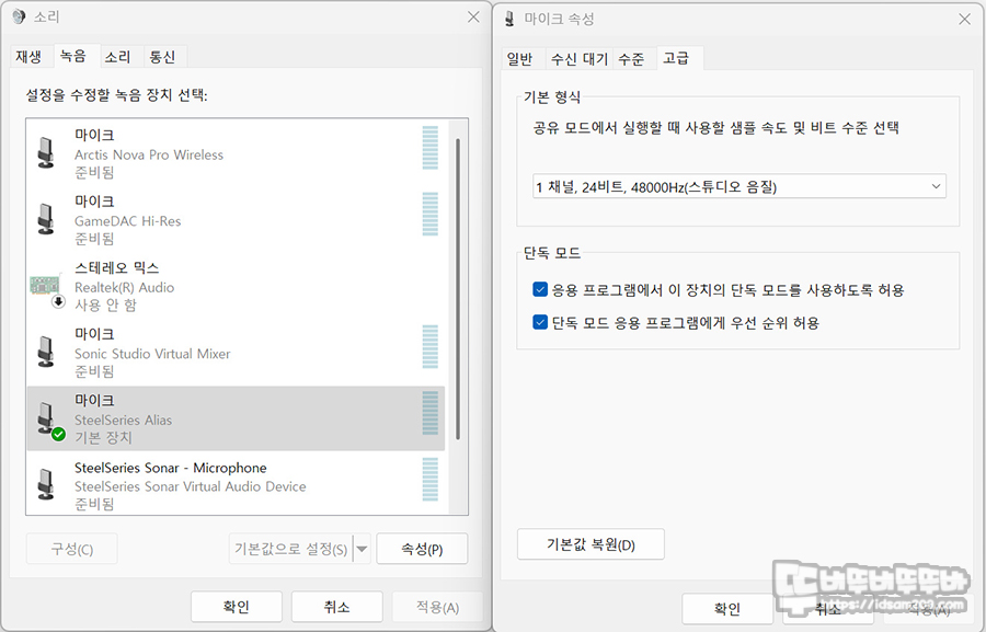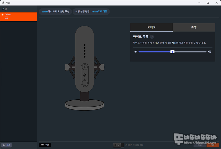 소프트웨어를 사용하지 않은 상태에서 Alias 마이크의 기본 성능을 확인해 보았습니다.