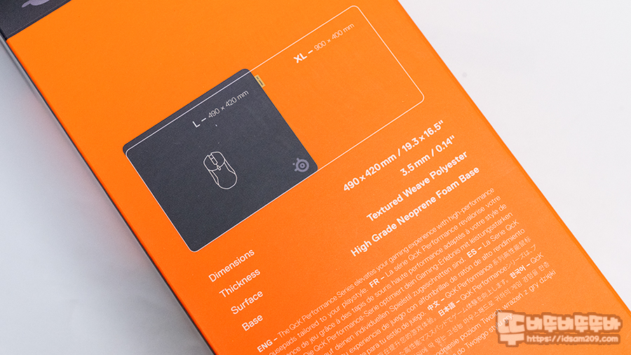 스틸시리즈의 QcK Performance는 논슬립 네오프렌 베이스가 적용되어 그런지 촘촘하지 않고 크게 원형으로 말려있어 큰 사이즈의 사각형 패키지에 담겨 있는데요.