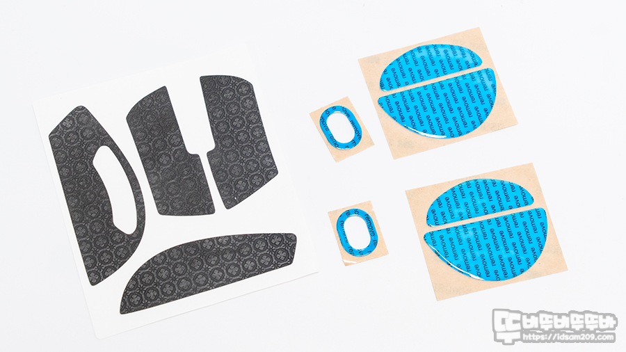 그립 테이프와 2세트 구성의 마우스 피트 모습.