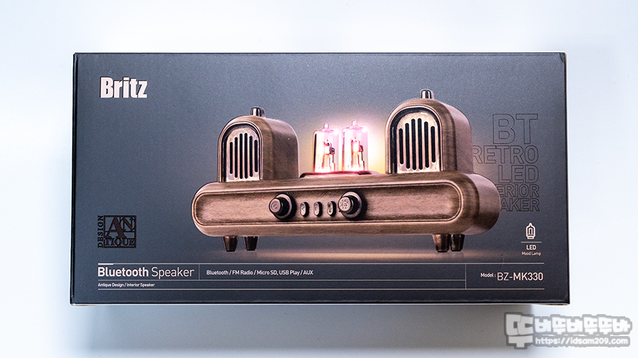 브리츠 BZ-MK330의 패키지는 제품의 이미지와 모델명 그리고 엔틱 디자인, LED 무드램프 표현이 눈에 뜹니다.