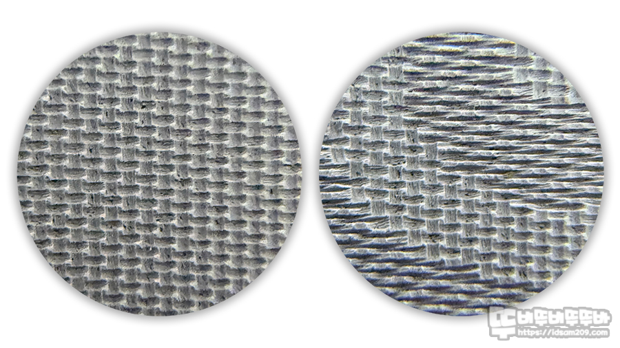 패드의 모직과 바닥면은 확대경으로 촬영을 해보았습니다.