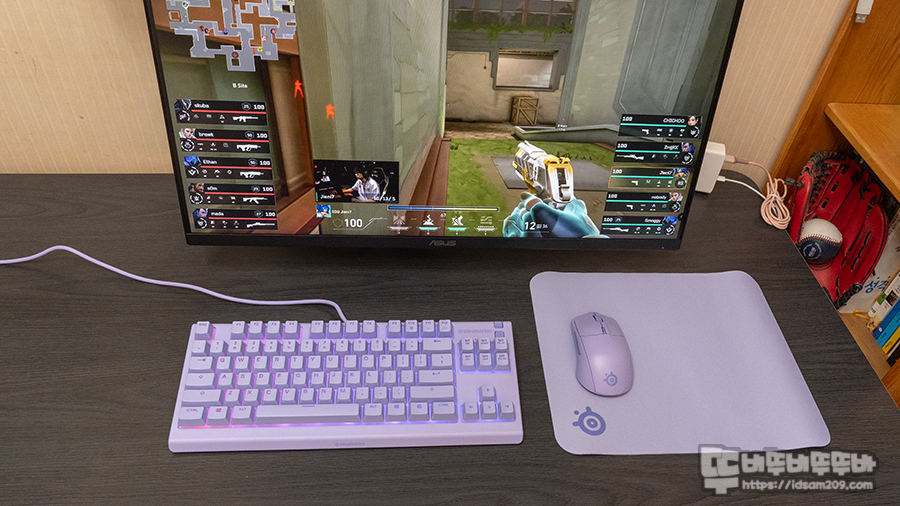 특히 스틸시리즈의 파스텔 톤의 라벤더 컬러는 은은하면서 안정감을 주며 키보드, 마우스, 패드의 컬러가 통일되면서 쎄뚜쎄뚜 감성이 잘 살려줍니다.