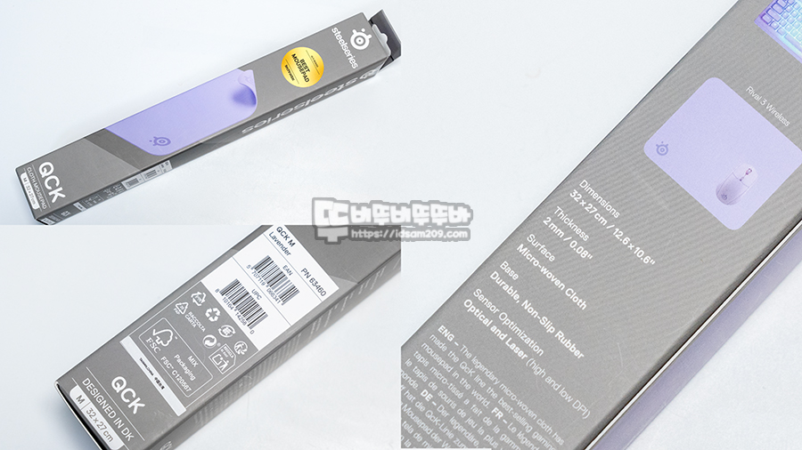 프로게이머들이 15년간 신뢰해 온 QcK 시리즈의 미디엄 사이즈 제품으로 블랙에서 시작해 다양한 컬러와 콜라보 모델까지 확장된 스테디셀러이며 이번 파스텔톤 시리즈는 바닥면 컬러까지 블랙이 아닌 라벤더/아쿠아 컬러가 적용된 것이 특징이네요.