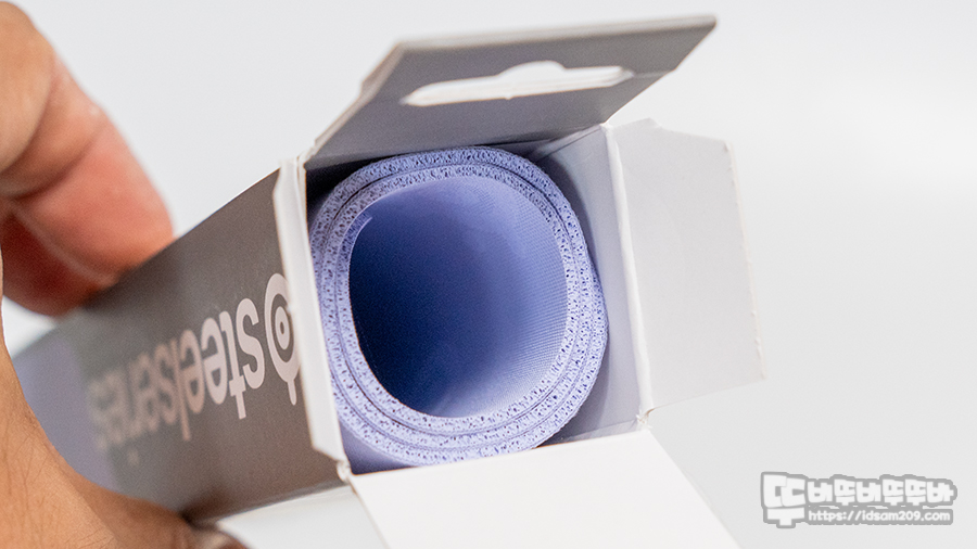 320 mm x 270 mm x 2 mm의 M모델은 작은 사각 박스에 돌돌 말아서 포장하여 마우스 패드가 펼쳐지기까지 시간이 조금 필요하니 참고하시고요.