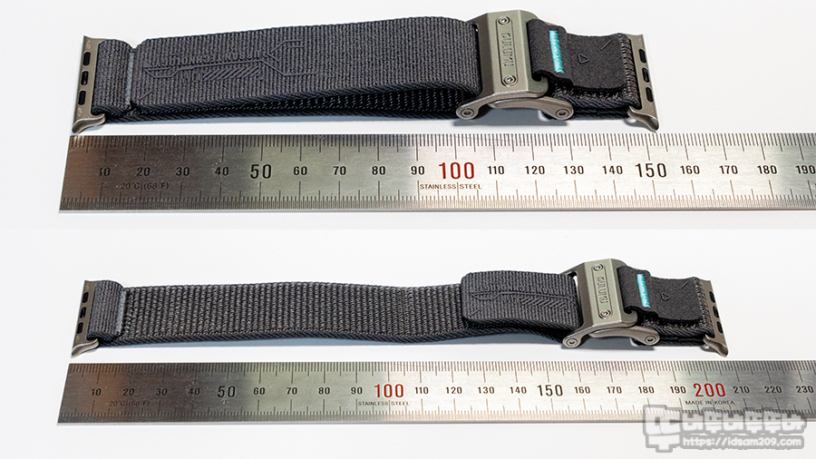 공식 스펙에서도 짧은 스트랩은 손목 사이즈 145mm~180mm, 긴 스트랩은 손목 사이즈 170mm~225mm에 적합하다고 설명하고 있으니, 손목 사이즈에 맞는 스트랩을 선택하는 데 참고하시면 도움이 될 것입니다.
