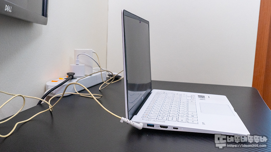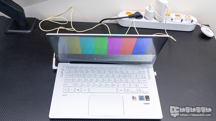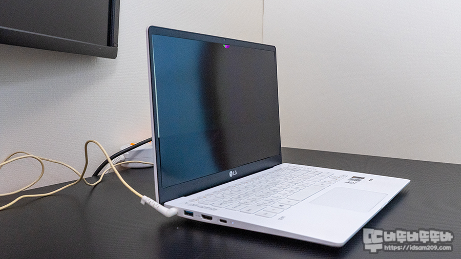 LG 그램 14의 화면보다 3M BP140W9B 필름이 미세하게 작은 관계로 LCD 화면을 완벽하게 꽉 채우지는 못해 윈도우 작업표시줄이 있는 하단부 공간을 조금 포기하고 최대한 위쪽으로 바짝 끌어올려 부착했습니다.