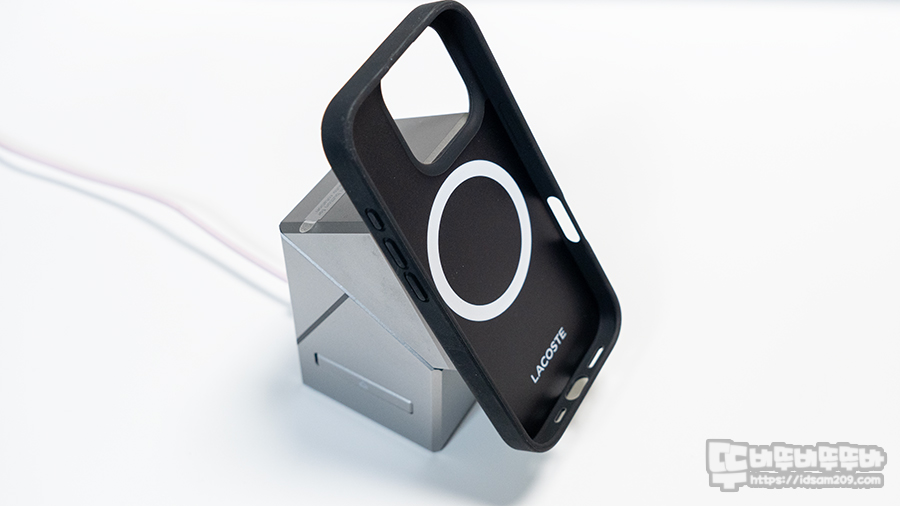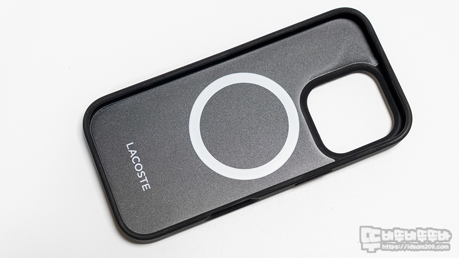 라코스테 아이폰 16 Pro 하드 피케 케이스의 특이한 점은 안쪽에는 라코스테 글자 로고와 맥세이프 원형 자석이 부분이 표시되어 있지만 바깥쪽은 맥세이프 표시가 없는데요.