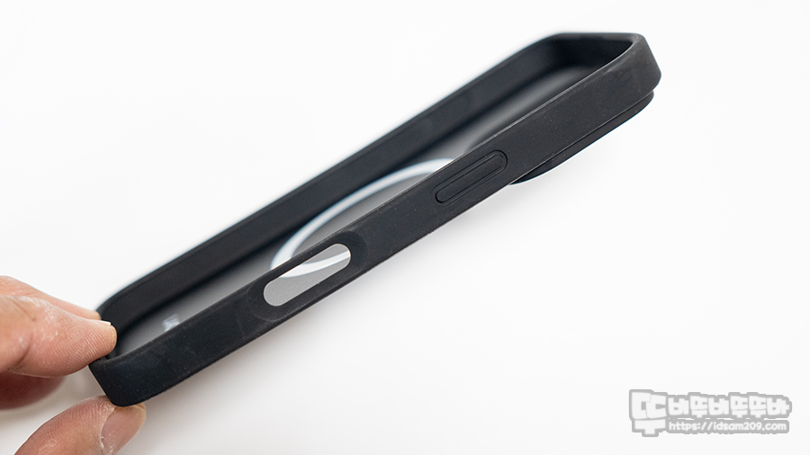 낙하 충격을 방지하는 측면 부는 대부분 TPU 소재가 사용된 듯 보이며 단단하게 디자인된 뒤판 부분이 PC와 PVC가 혼합으로 사용된 느낌입니다.